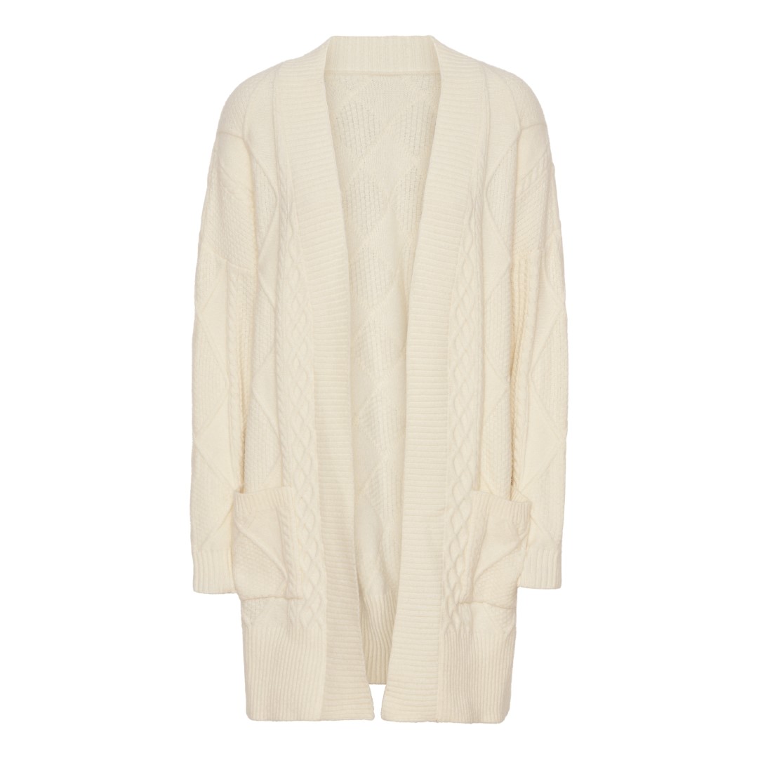 Denne lækre cardigan i det flotteste mønster med oversize-pasform er fremstillet i en blød kvalitet. Den har sidelommer og ribkanter som understreger den casual stil. Brug den gerne sammen med et par jeans eller skindleggings.